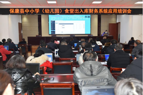 1月11日,保康县教育局全县中小学食堂出入库财务系统应用培训会议在县教育局召开,全县各级各类学校会计、出纳、仓库管理员共100余人参加会议。
