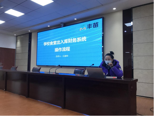 会议传达了省教育厅财政厅有关文件精神,及省市领导关于加强学校食堂财务管理的要求,强调加强食堂财务管理的重要性。丰苗培训讲师团小伙伴们一行五人与局领导及参会老师们就系统使用进行了深入的交流和讲解,从系统架构、系统规则、日常应用、操作流程、账套管理、科目管理、结转结算、数据处理、审核记账等进行实际操作演示,并以城关镇小学食堂为例,模拟讲解食堂出入库全流程和账务处理全过程。讲解完成后,现场进行了多轮提问及答疑,会场气氛热烈、兴致盎然。