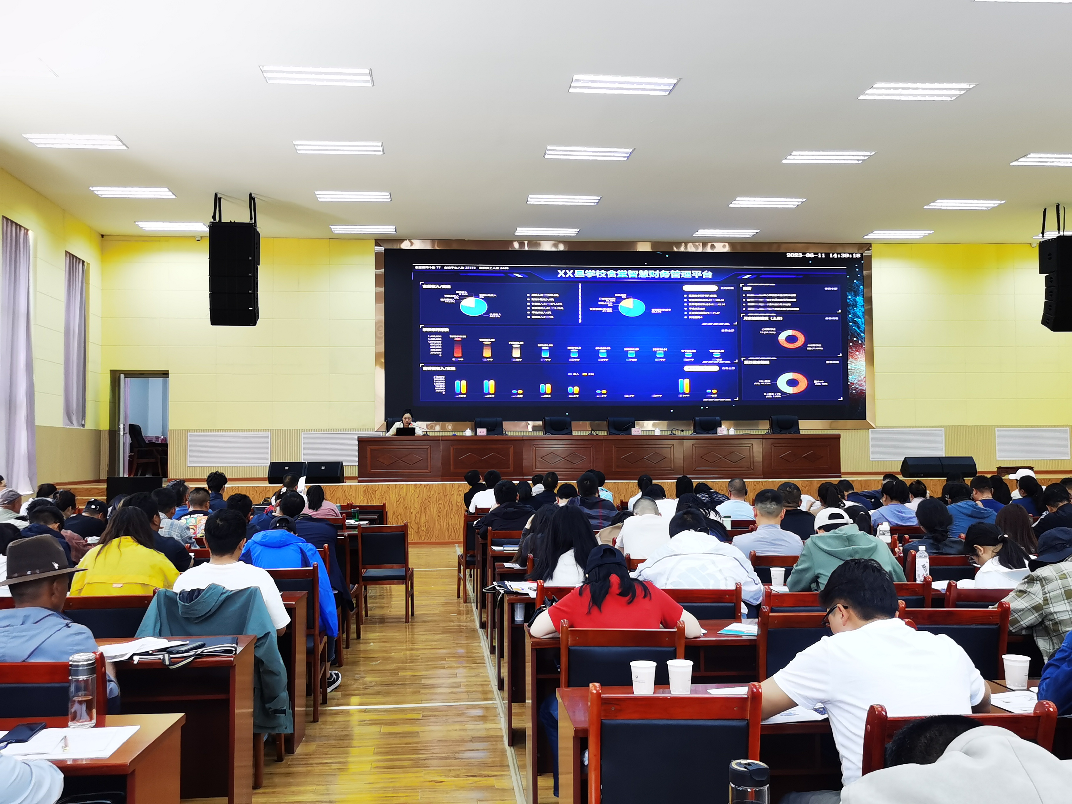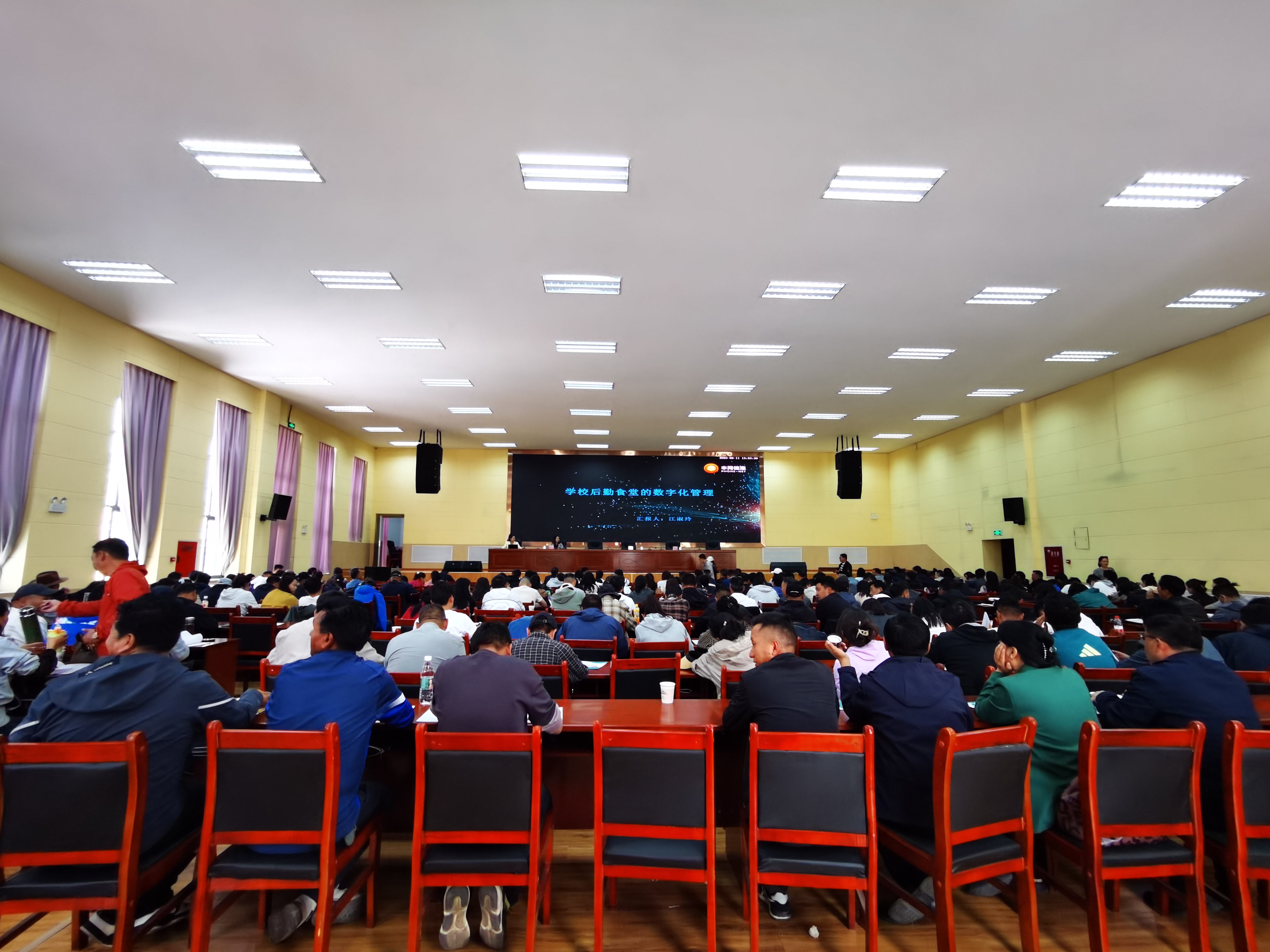 各县区教育局局长或分管副局长,财务、营养改善管理人员;各中小学校校长或分管副校长及财务、营养改善具体工作人员,共计340人参加。 武汉丰网信息技术有限公司受拉萨市教育局邀请参加了本次培训班,并在培训班上做了“学校后勤食堂的数字化管理”的专题分享。 如何更好落实《教育部等七部门关于印发<农村义务教育学生营养改善计划实施办法>的通知》精神和具体工作要求?学校在食堂出入库中如何实现完整的流程化数字化管理?如何将各类食材采购明细建账?如何将营养餐采购及三包餐采购的成本和结余分别生成报表?针对当地食堂管理中的一系列痛点问题,公司教育产品部江淑玲经理结合公司智慧后勤系列产品以及在湖北多个区县的应用案例,深入浅出的做了精彩的经验分享和交流。一个多小时的分享中,学员们兴致盎然,意犹未尽,不时拿起手机拍照记录精彩细节。